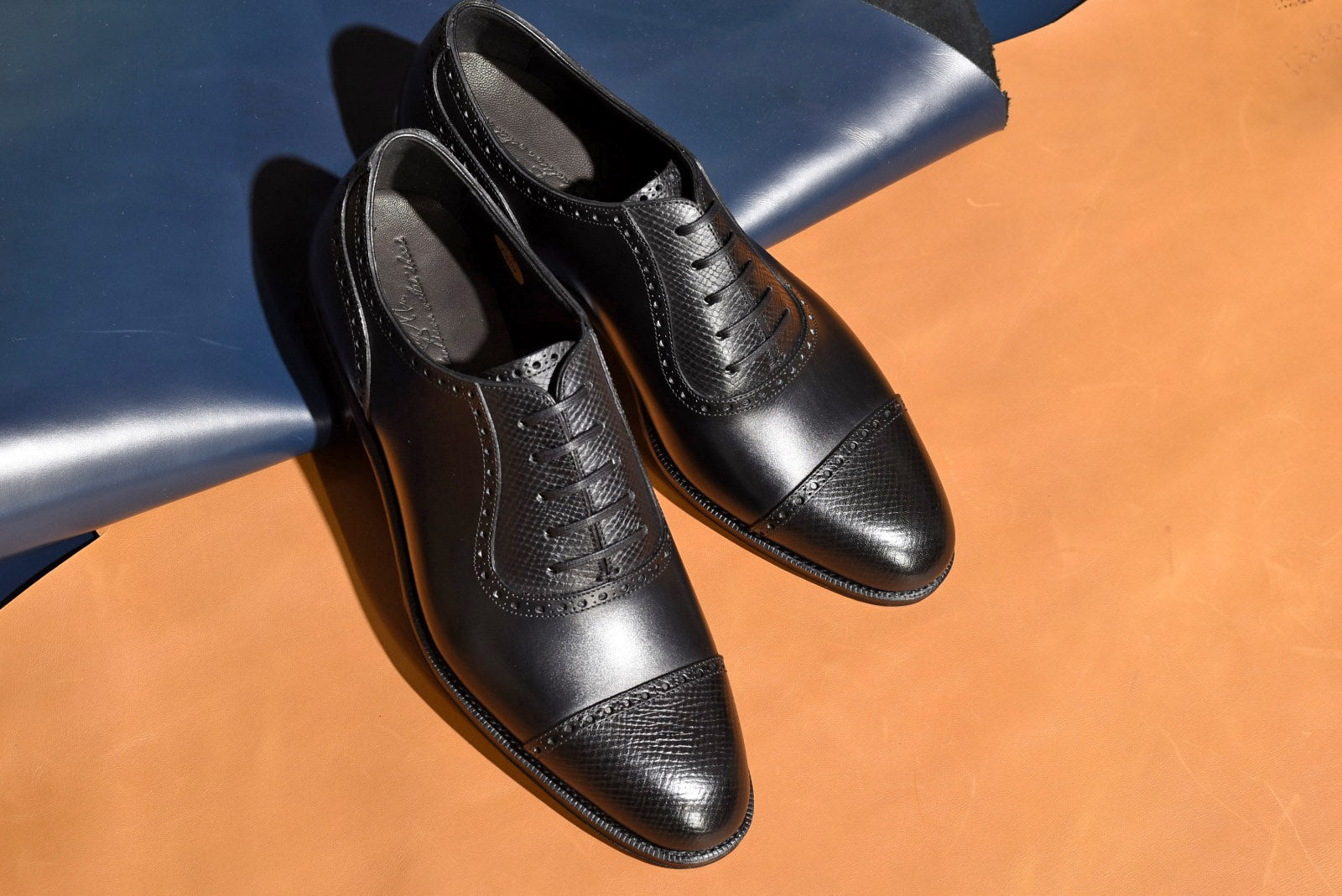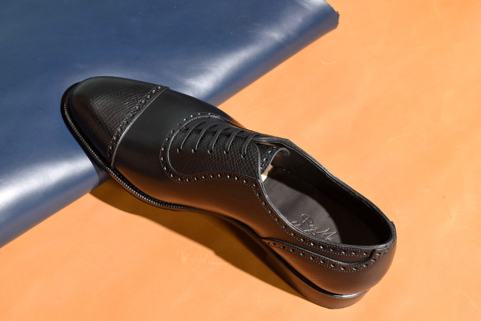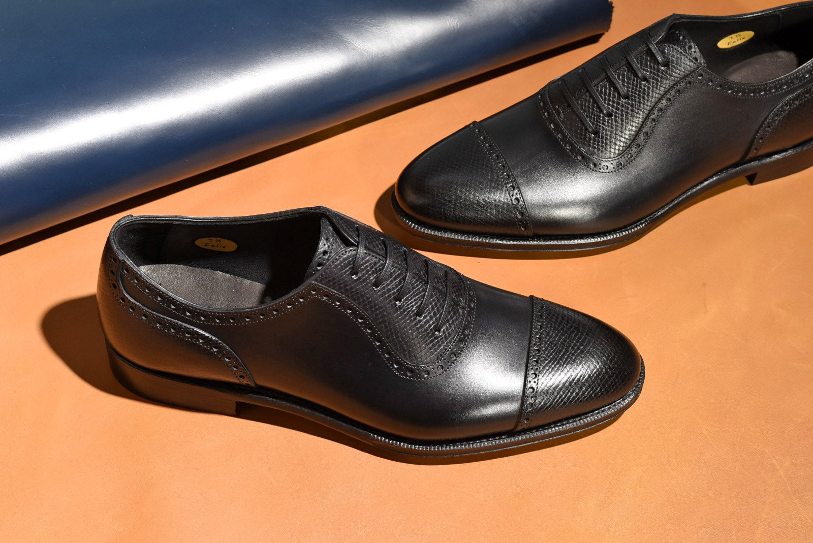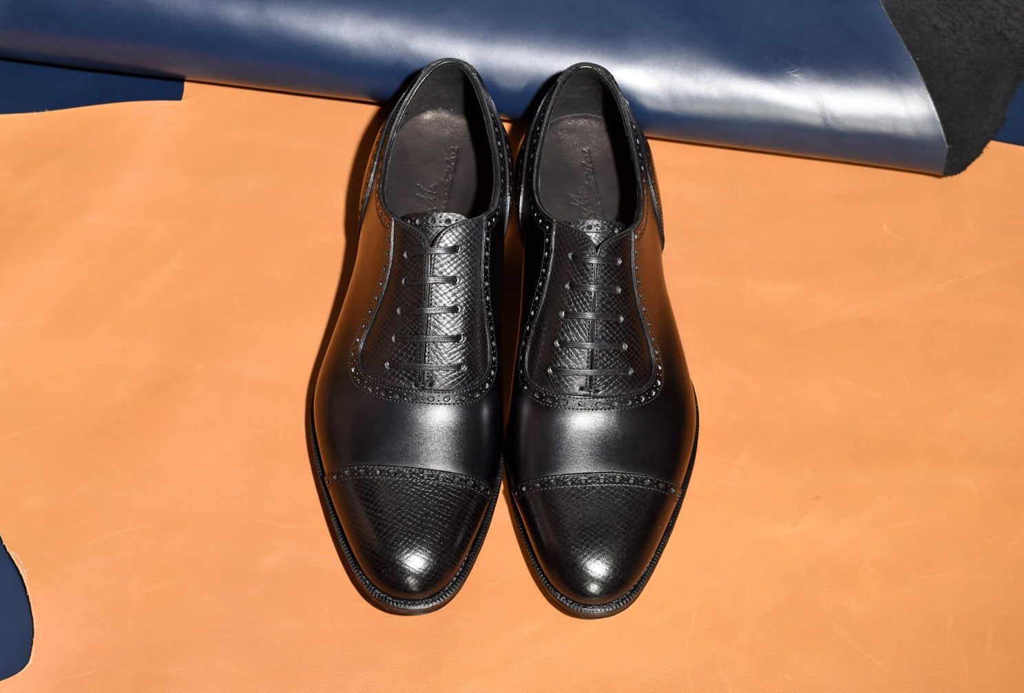 Product:“Felix” Combination Adelaide, Black Dress Shoes, Horween Hatch Grain & Weinheimer Box calf, Hand welted, US size 5 1/2 ~ 11
