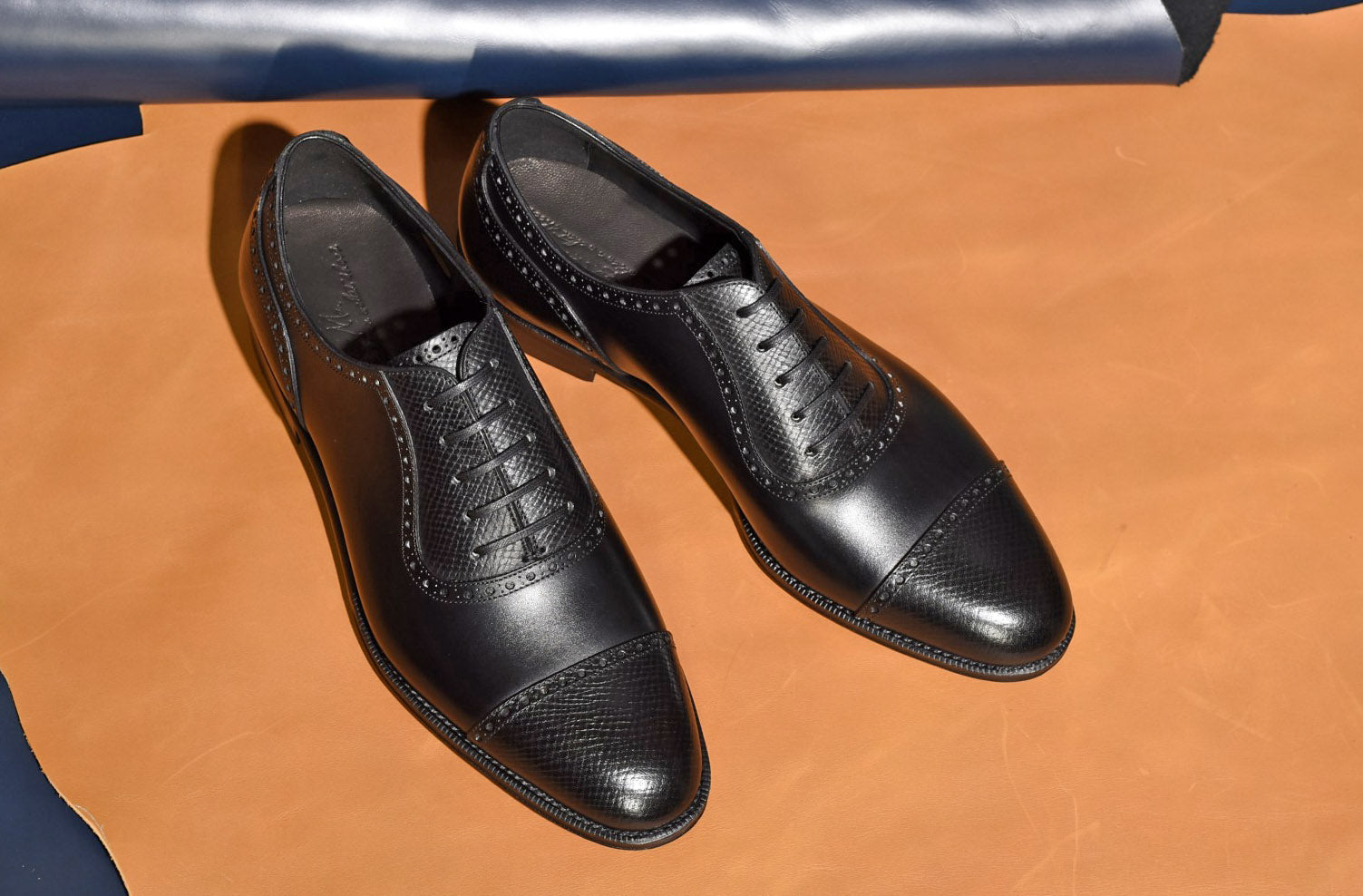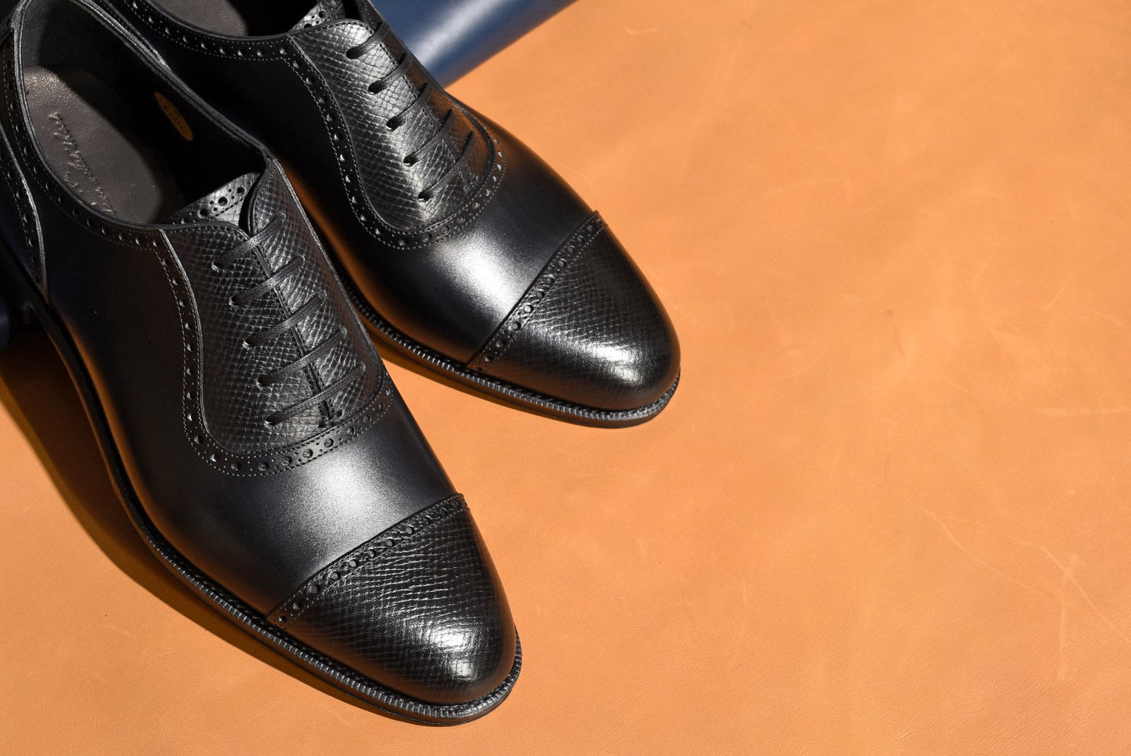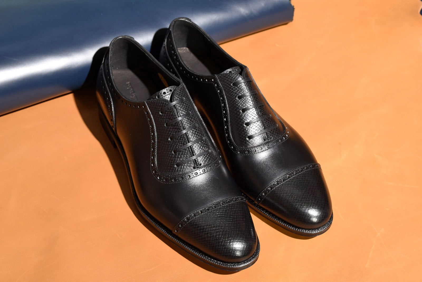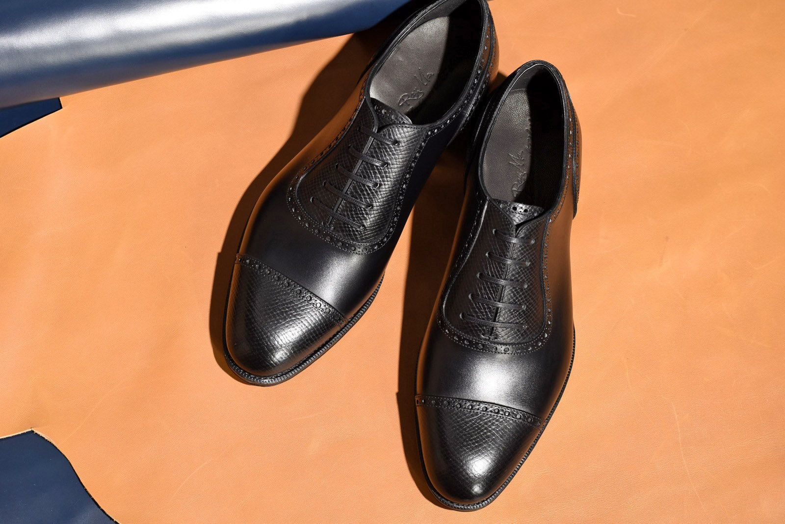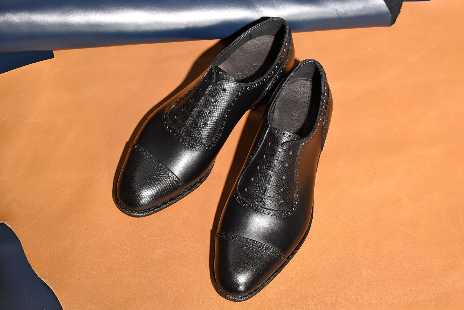 Product:“Felix” Combination Adelaide, Black Dress Shoes, Horween Hatch Grain & Weinheimer Box calf, Hand welted, US size 5 1/2 ~ 11